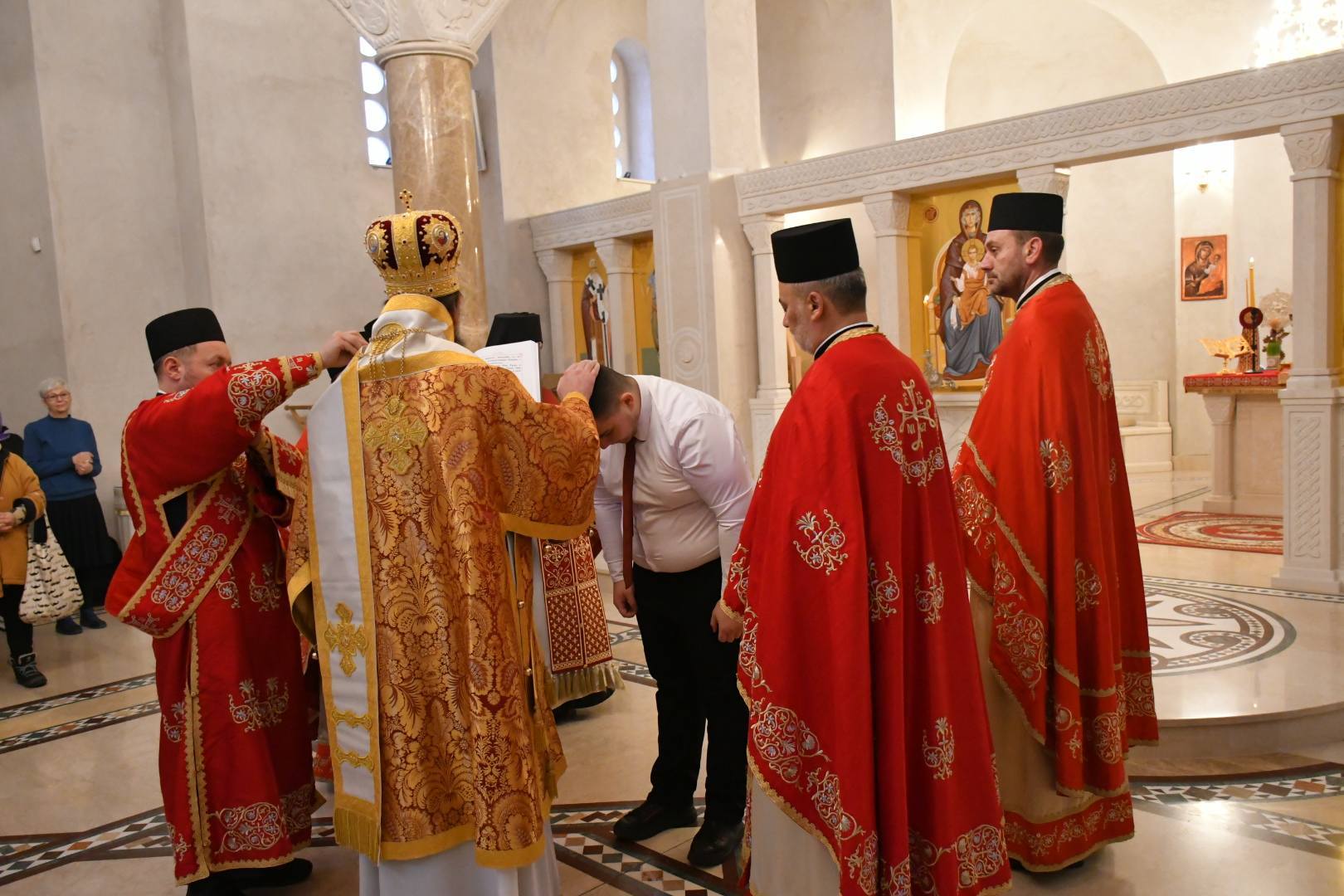 На Бадњи дан, у уторак, 6. јануара 2026. године, Његово Високопреосвештенство Митрополит нишки г. Арсеније служио је Свету Архијерејску Литургију Светог Василија Великог у нашем храму.